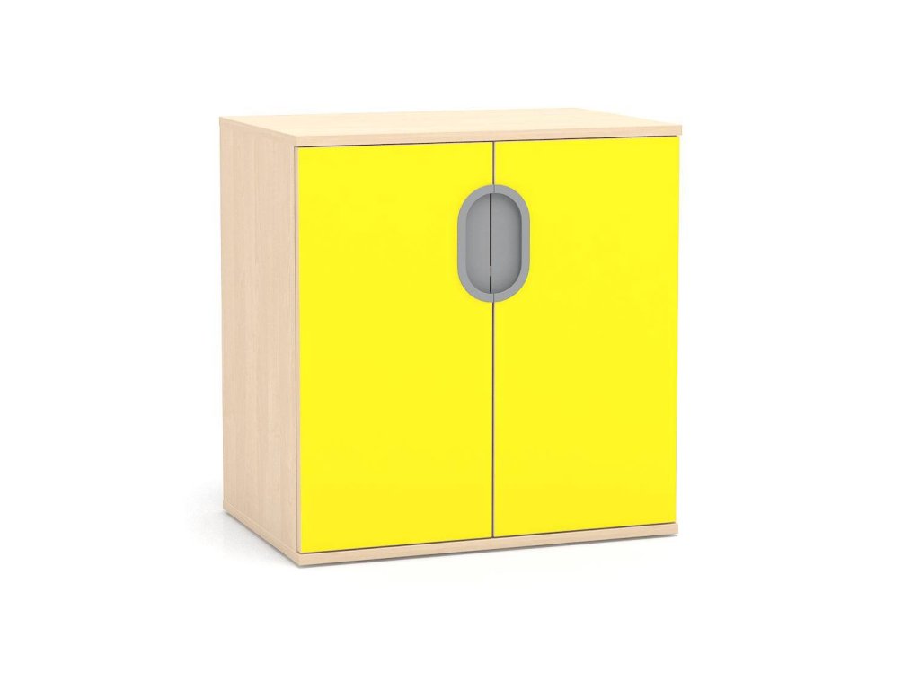Nízká skříň pro MŠ dvoudvéřová se zámkem, 73,5x76x48 cm, z laminované dřevotřísky o síle 18 mm, 2 police, možnost barevných kombinací