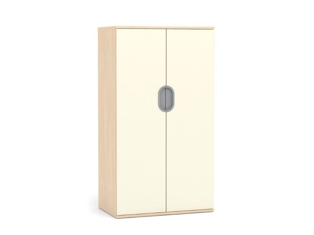 Střední skříň pro MŠ dvoudvéřová se zámkem, 144,7x80x48 cm, z laminované dřevotřísky o síle 18 mm, 3 police, možnost barevných kombinací