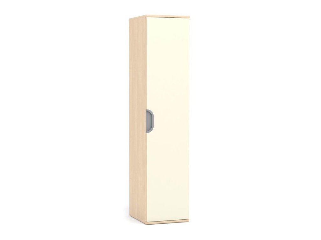 Vysoká skříň pro MŠ jednodvéřová, 180,3,7x40x48 cm, z laminované dřevotřísky o síle 18 mm, 4 police, možnost barevných kombinací