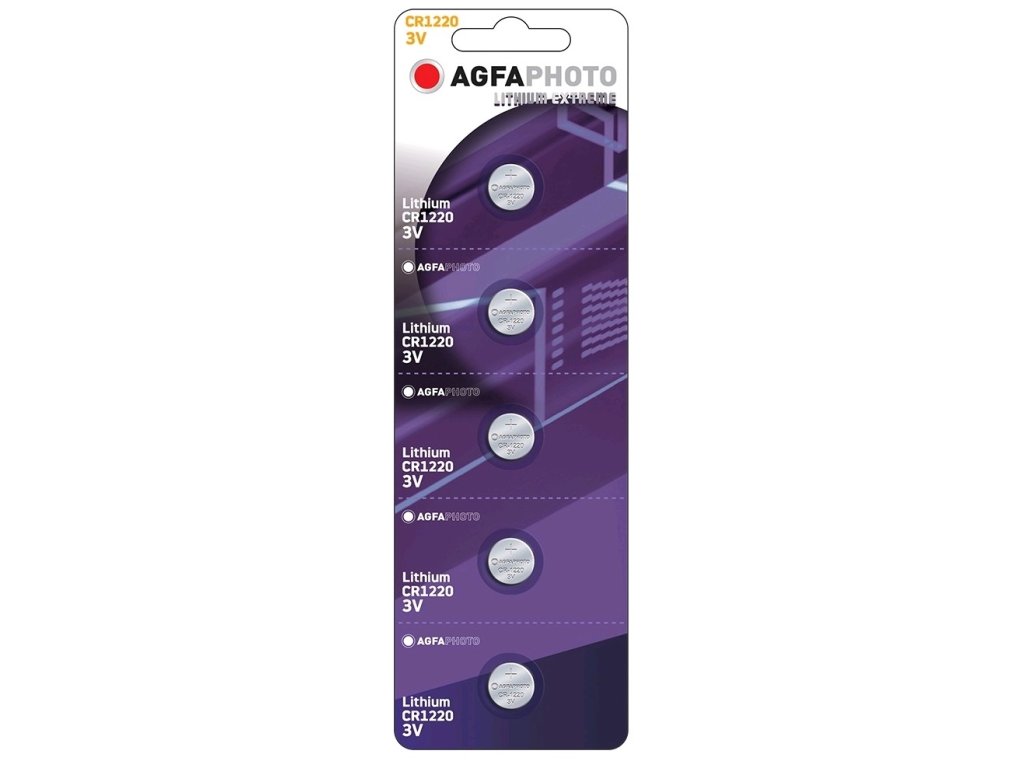 Knoflíková lithiová baterie AgfaPhoto CR1220, 3 V, blistr 5 ks