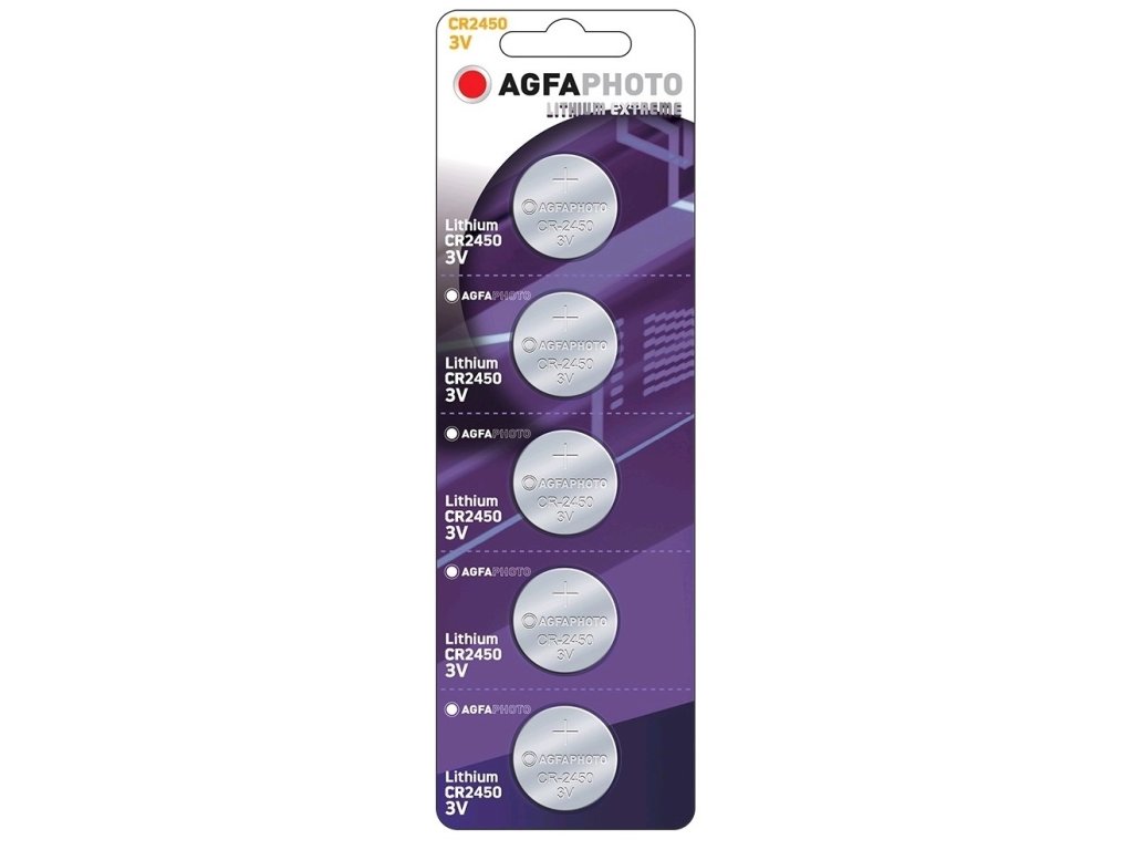 Knoflíková lithiová baterie AgfaPhoto CR2450, 3 V, blistr 5 ks