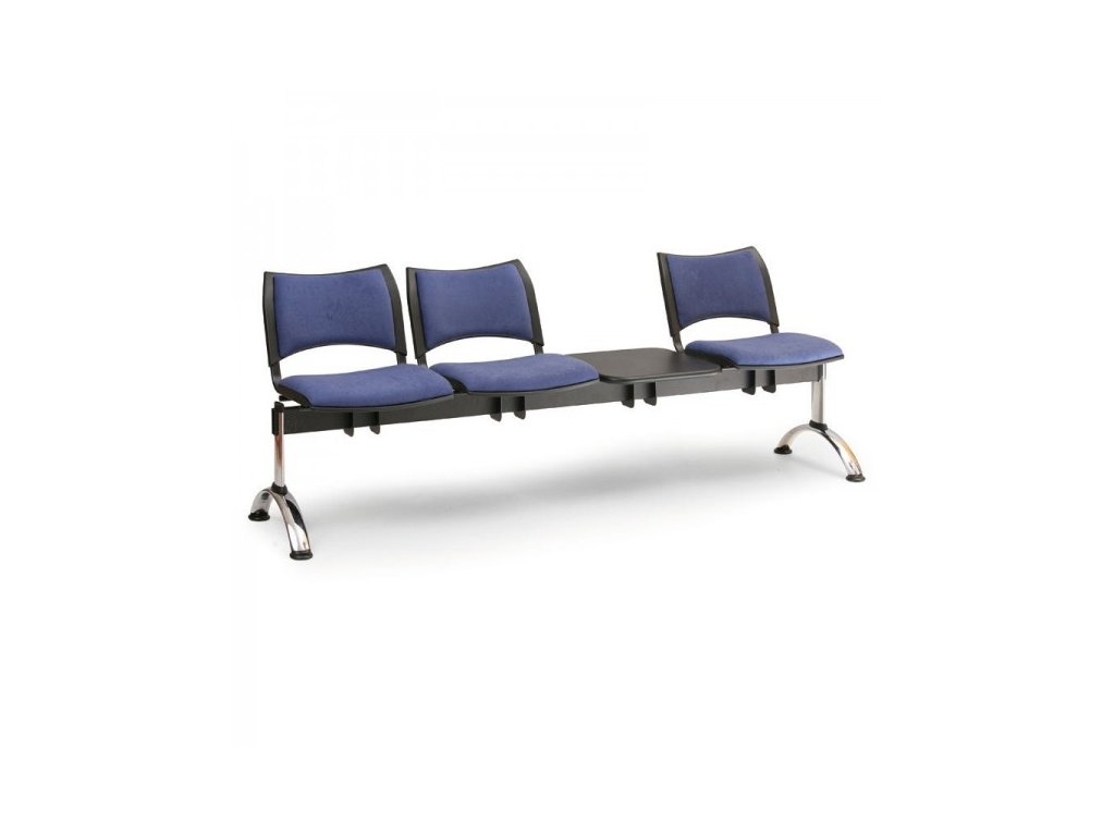 Čalouněná lavice do veřejných prostorů a čekáren, tři místa k sezení a stolek, sedák i opěrák jsou čalouněny látkou, nosnost jednoho místa je 100 kg, výběr z 6 barevDoplňkové parametry