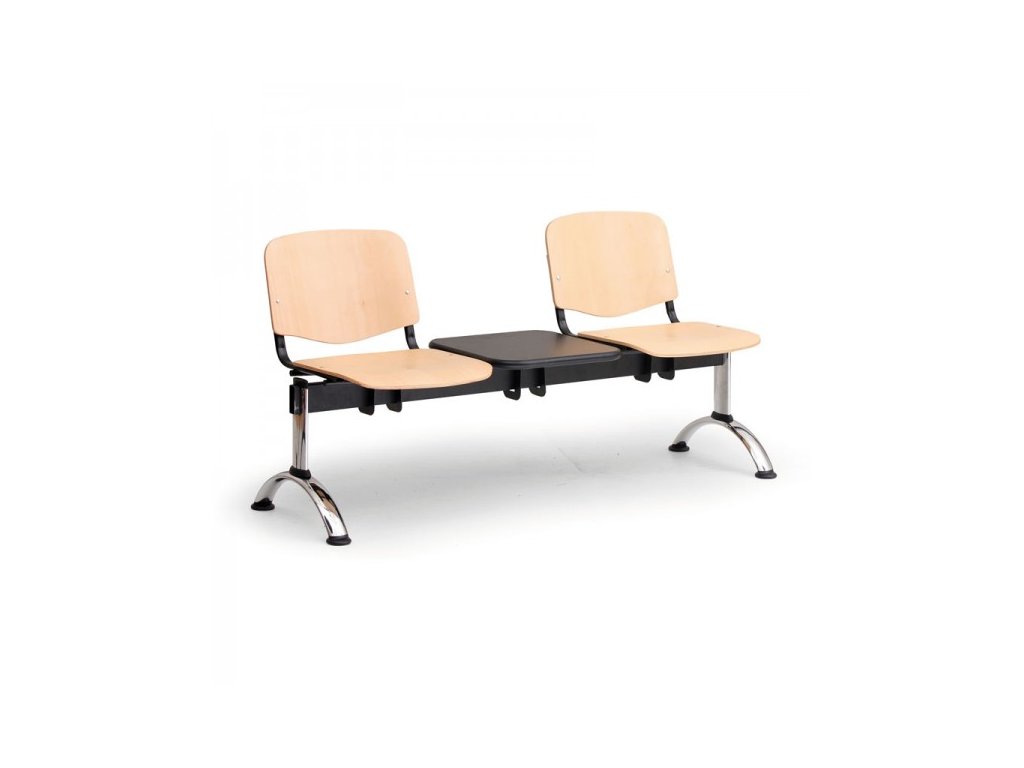 Dřevěná lavice ISO II, 2-sedák + stolek - chromované nohy