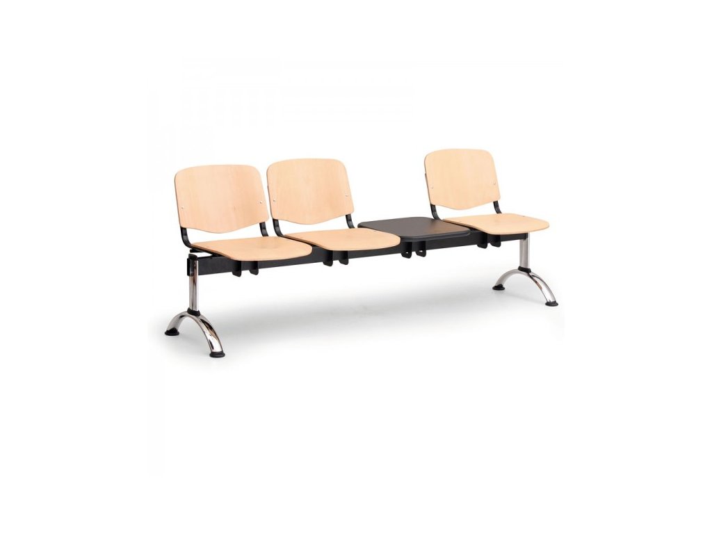 Dřevěná lavice ISO II, 3-sedák + stolek - chromované nohy