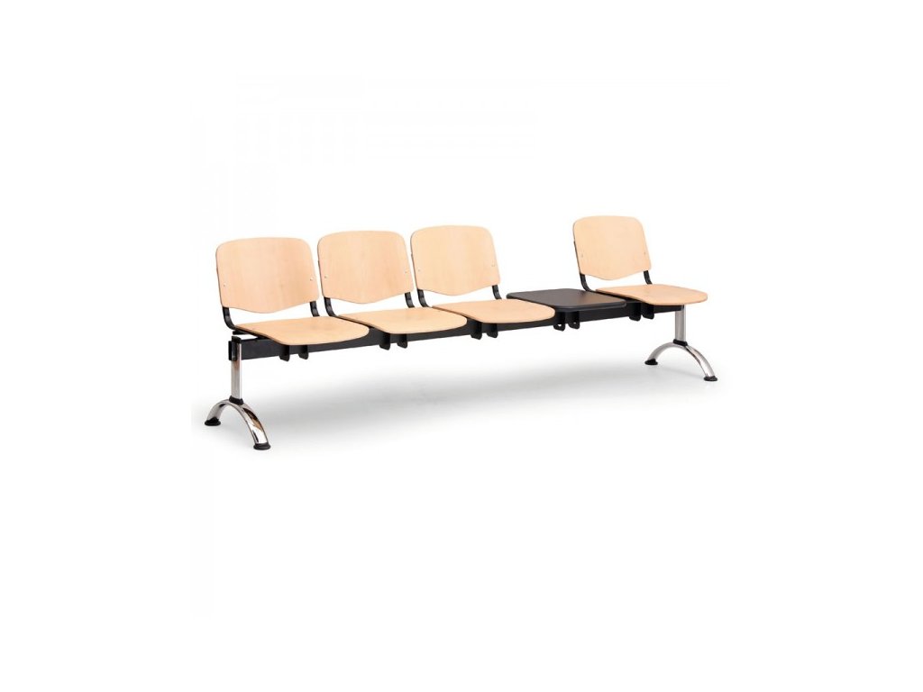 Dřevěná lavice ISO II, 4-sedák + stolek - chromované nohy