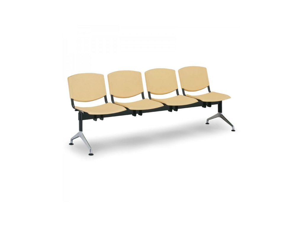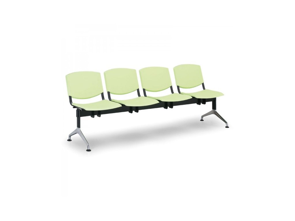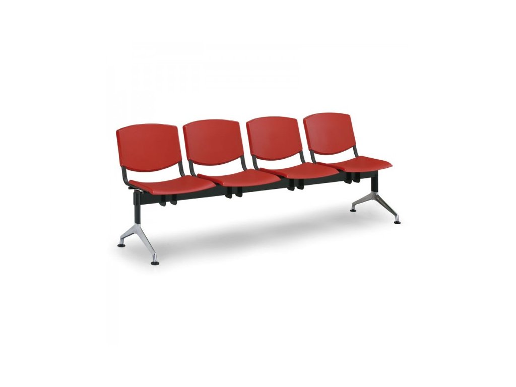 Plastová lavice do veřejných prostorů a čekáren, čtyři místa k sezení, sedák i opěrák jsou vyrobeny z plastových desek, nosnost jednoho místa je 100 kg, výběr z 6 barevDoplňkové parametry