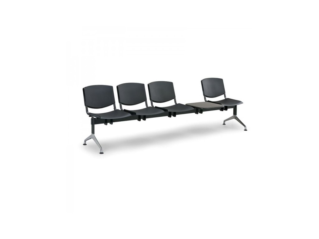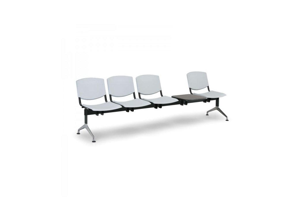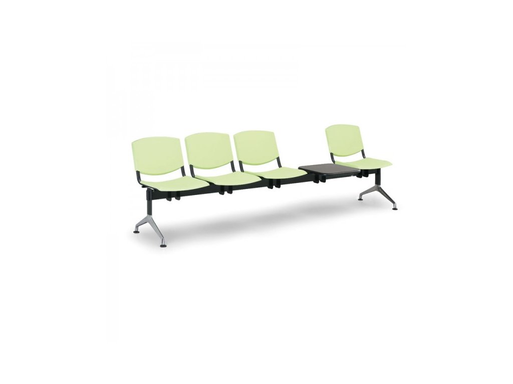Plastová lavice do veřejných prostorů a čekáren, čtyři místa k sezení a stolek, sedák i opěrák jsou vyrobeny z plastových desek, nosnost jednoho místa je 100 kg, výběr z 6 barevDoplňkové parametry