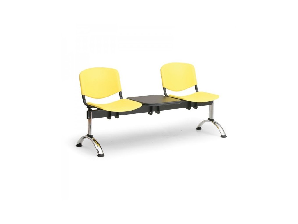 Plastová lavice ISO II, 2-sedák + stolek - chromované nohy