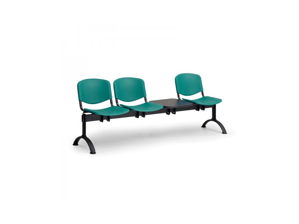 Plastová lavice do veřejných prostorů a čekáren, tři místa k sezení a stolek, sedák i opěrák jsou vyrobeny z plastových desek, nosnost jednoho místa je 120 kg, výběr z 5 barevDoplňkové parametry