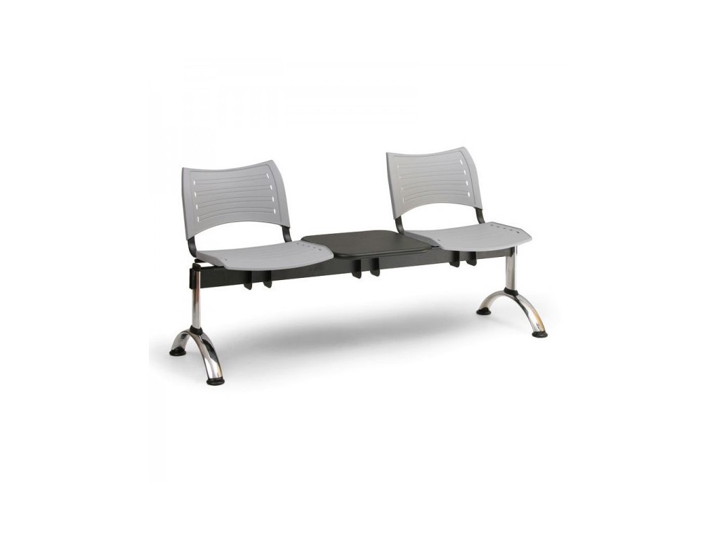 Plastová lavice do veřejných prostorů a čekáren, dvě místa k sezení a stolek, sedák i opěrák jsou vyrobeny z plastových desek, nosnost jednoho místa je 100 kg, výběr z 5 barevDoplňkové parametry