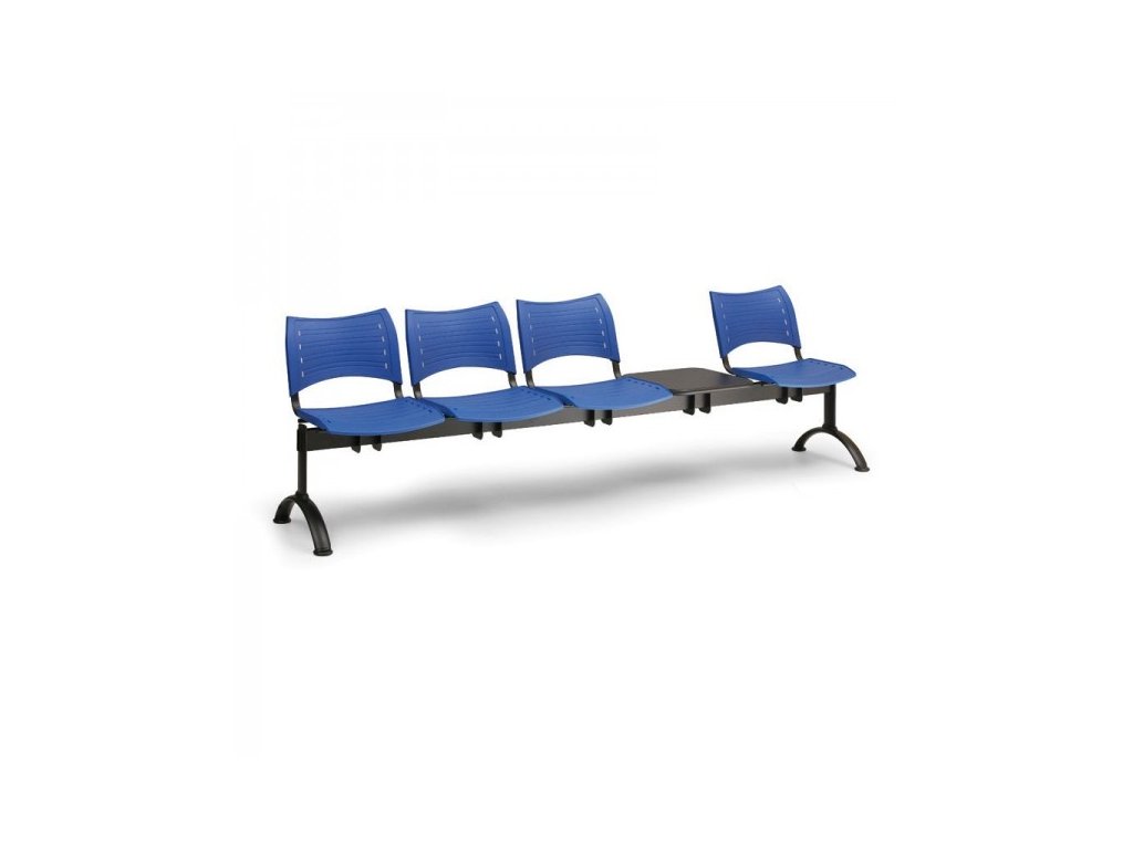 Plastová lavice do veřejných prostorů a čekáren, čtyři místa k sezení a stolek, sedák i opěrák jsou vyrobeny z plastových desek, nosnost jednoho místa je 100 kg, výběr z 5 barevDoplňkové parametry