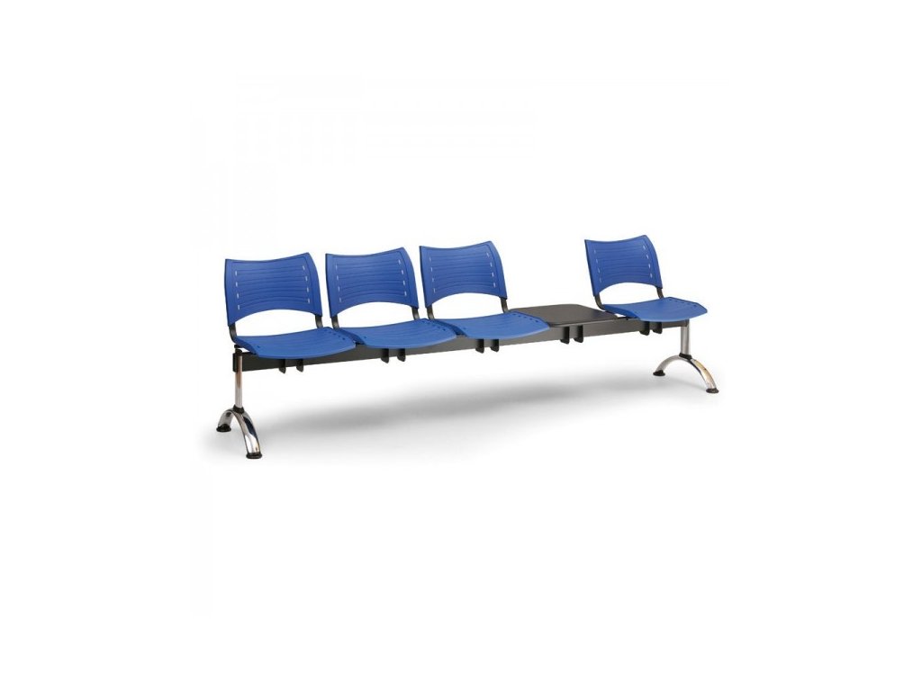 Plastová lavice VISIO, 4-sedák + stolek - chromované nohy