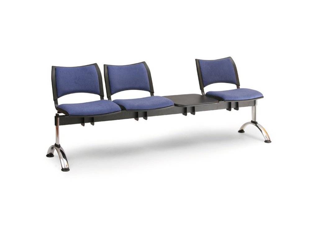 Čalouněná lavice SMART, 3-sedák + stolek - chromované nohy