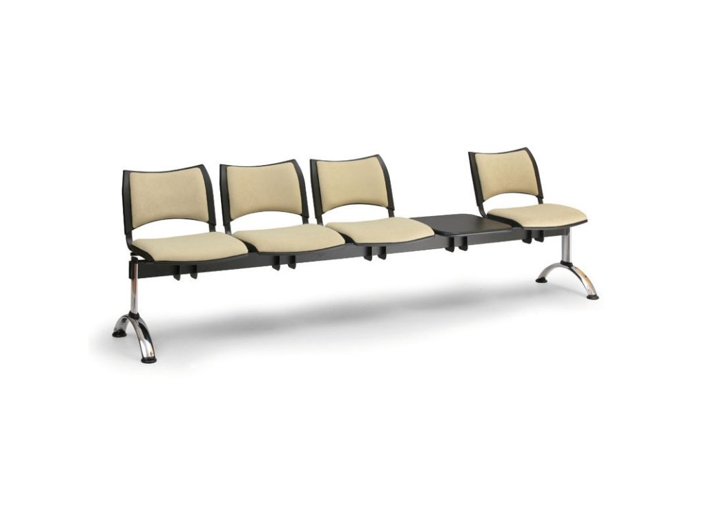 Čalouněná lavice SMART, 4-sedák + stolek - chromované nohy