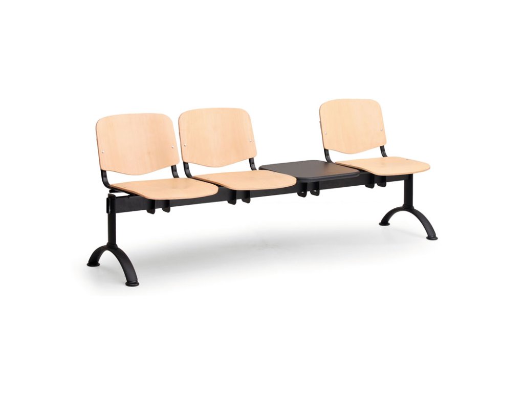 Dřevěná lavice ISO II, 3-sedák + stolek - černé nohy