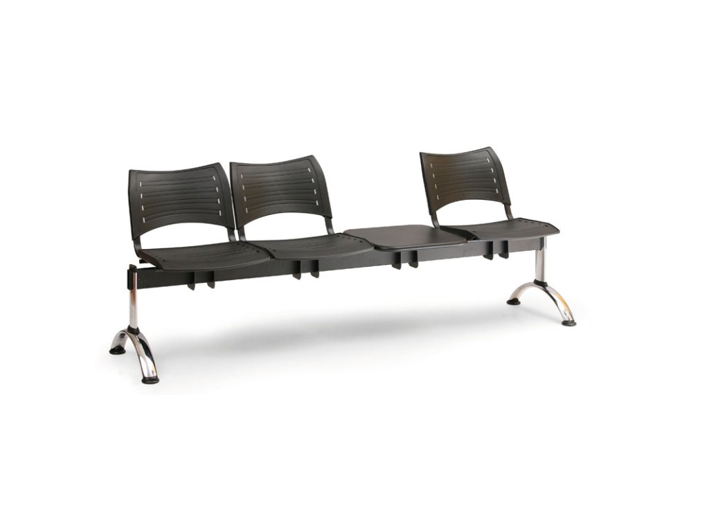 Plastová lavice VISIO, 3-sedák + stolek - chromované nohy