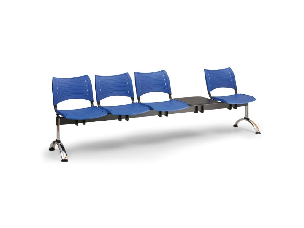 Plastová lavice VISIO, 4-sedák + stolek - chromované nohy