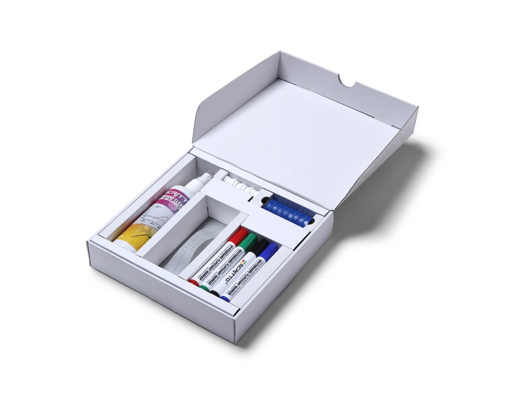 Set magnetů, fixů, čistícího spreje a houbičky na tabule