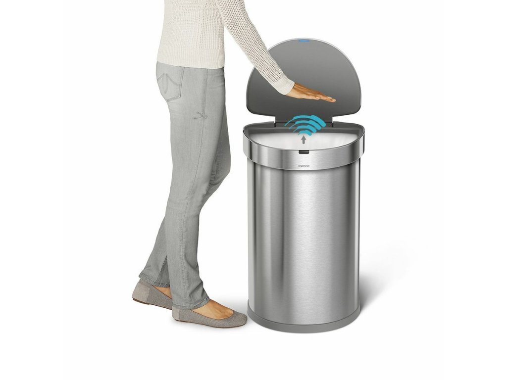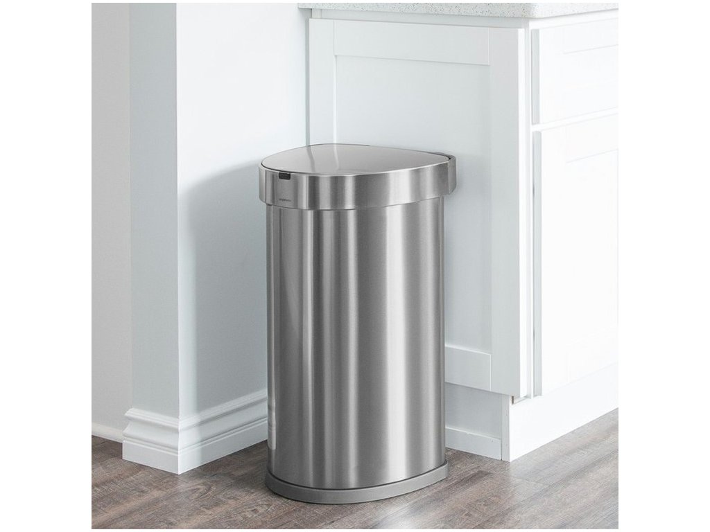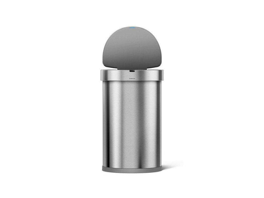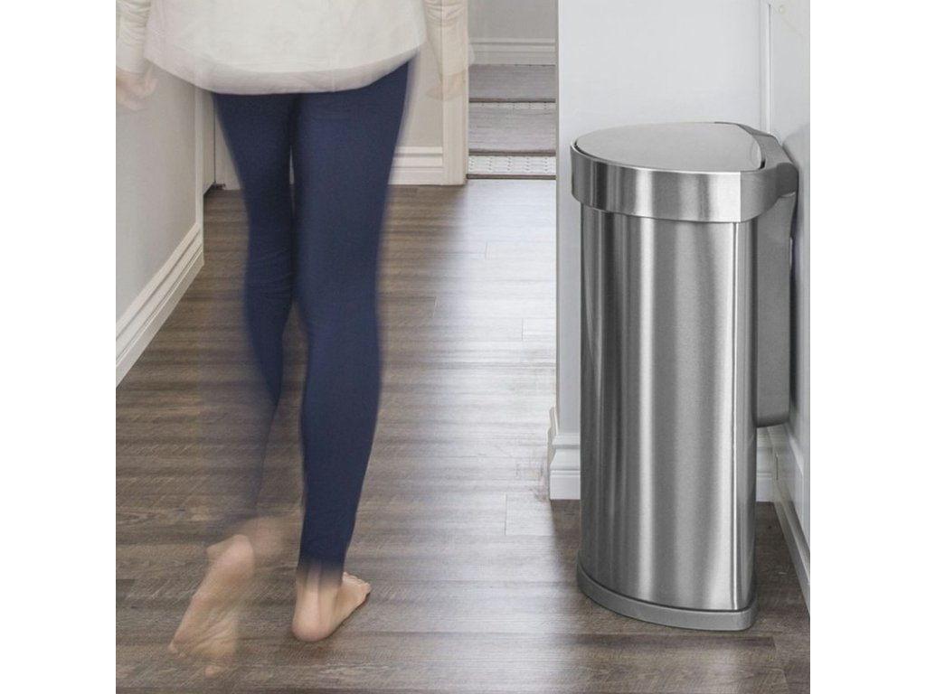 Půlkulatý bezdotykový koš, 45 l, matná ocel, nerez
