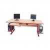 Základem je kvalitní kovová konstrukce ošetřena práškovou barvou dle vzorníku RAL a deska z laminované dřevotřísky o síle 18 mm. Na hrany desky je použita ABS hrana o tloušťce 2 mm a její barva vždy koresponduje s barvou konstrukce. Pro lepší ergonomii a pohodlí při práci na PC dodáváme ke stolům výsuvy na klávesnici.