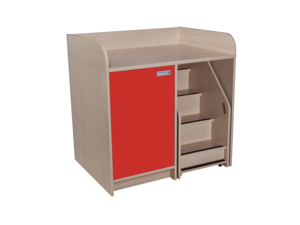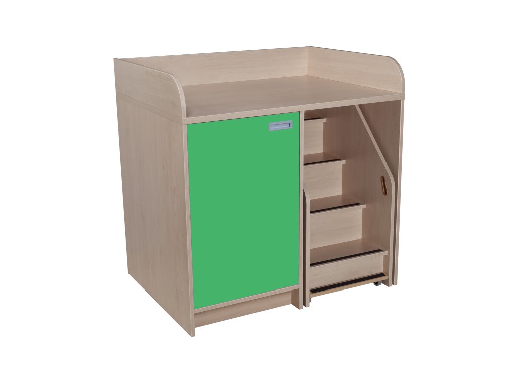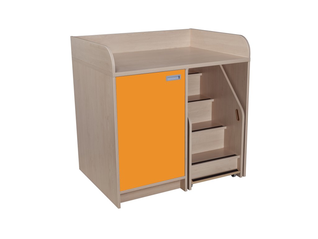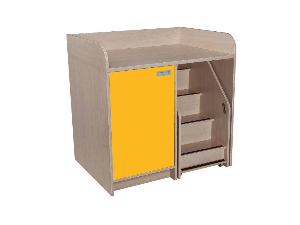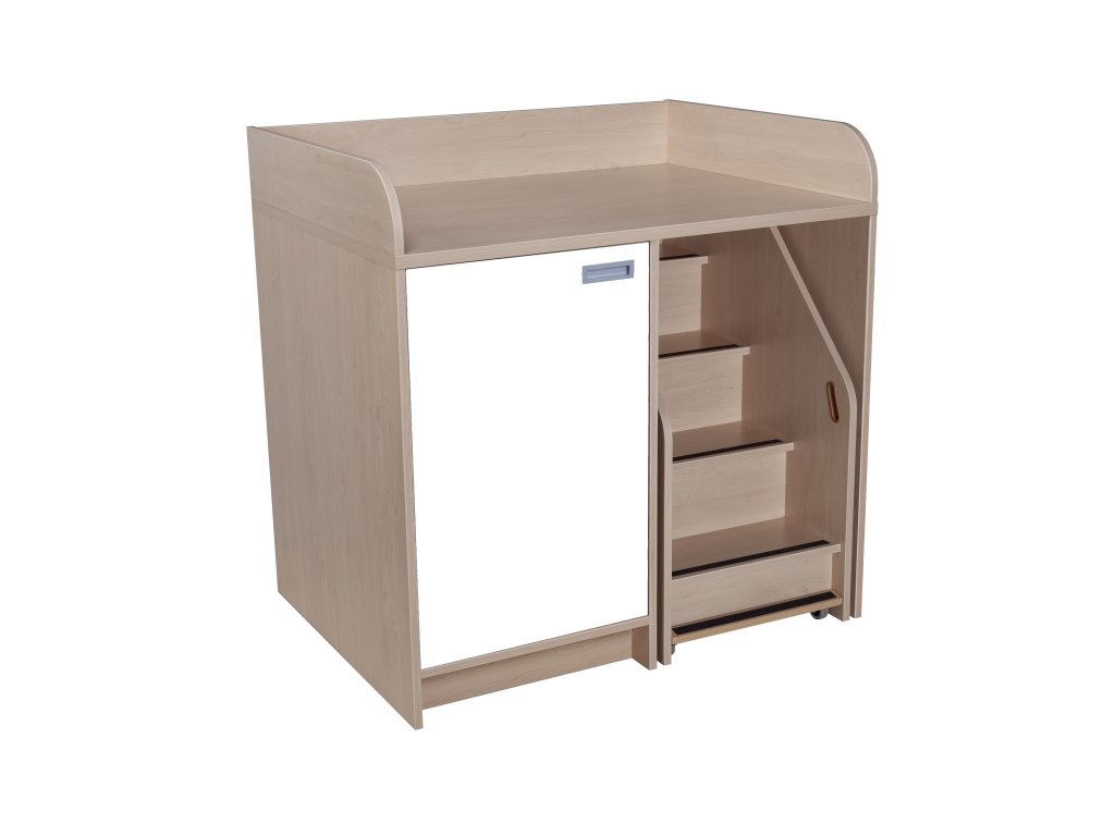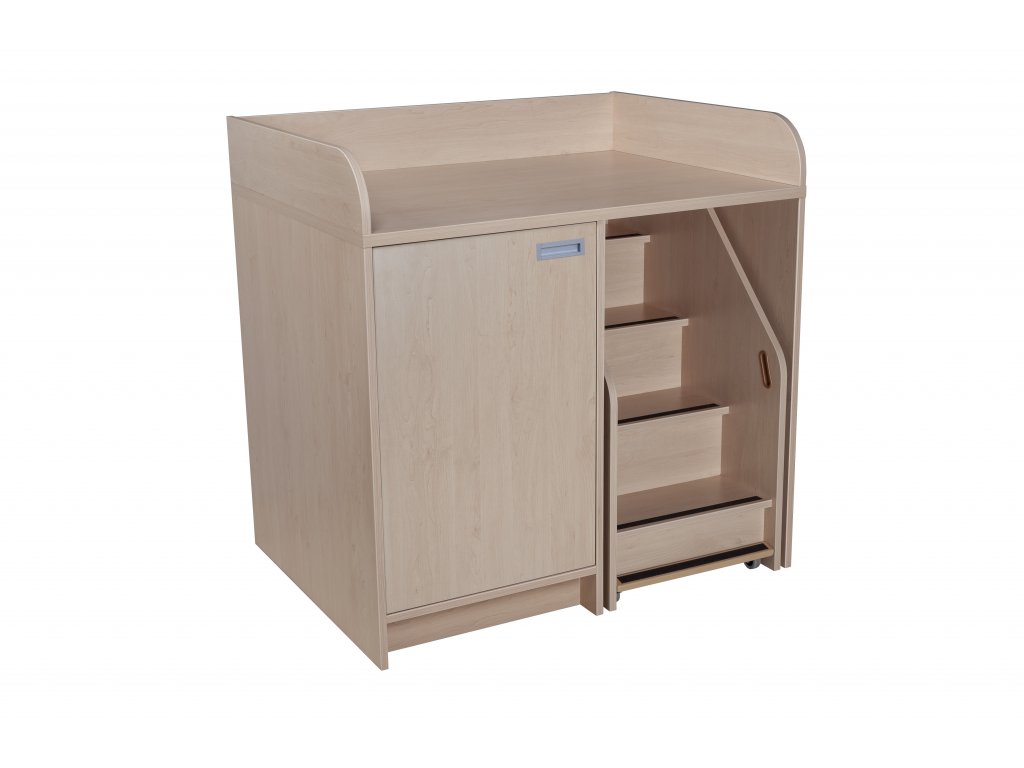 Přebalovací pult s dveřmi a schodištěm, 105 x 105 x 79 cm (h.plocha 90), z laminované dřevotřísky o síle 18 mm, ABS hrana, dezén javor.
