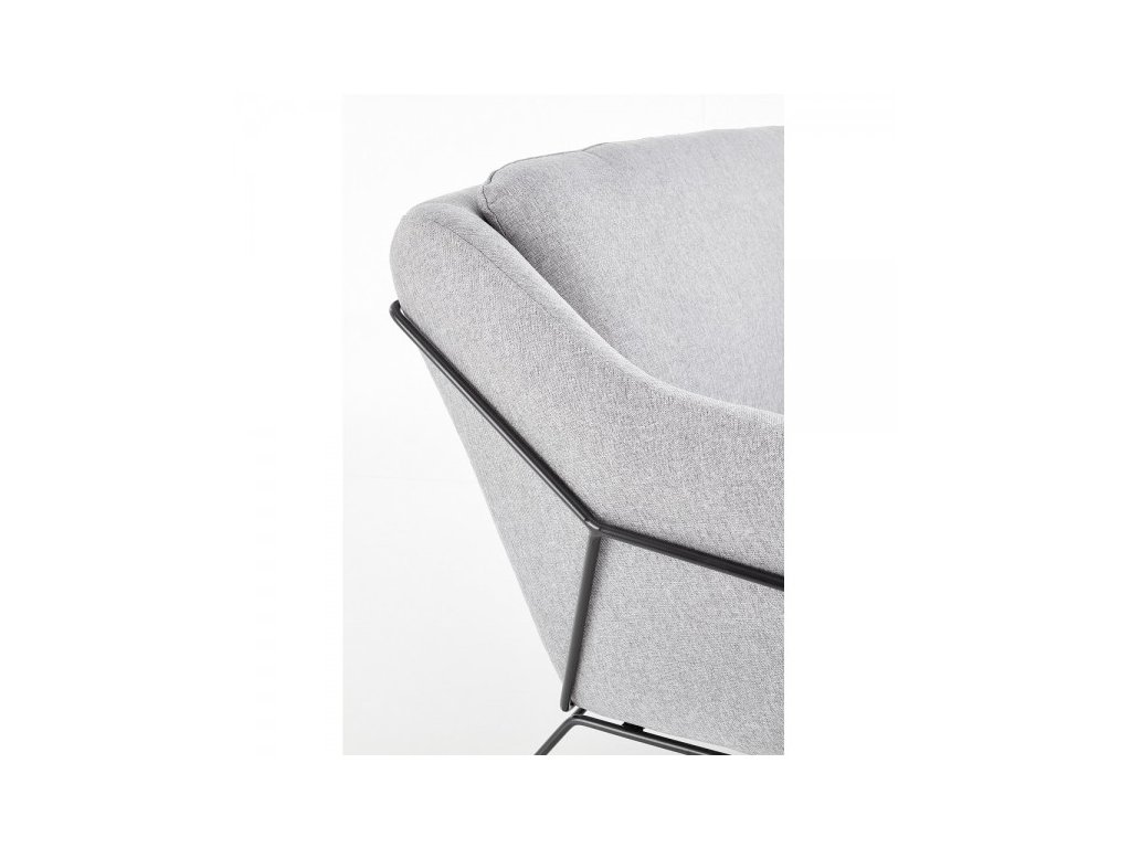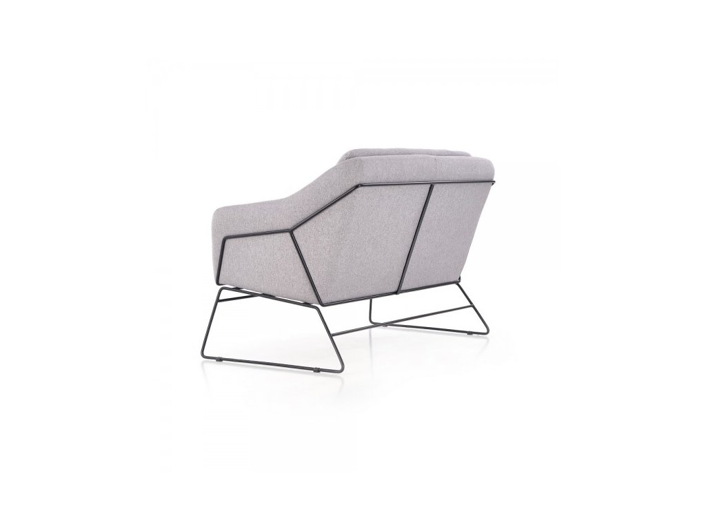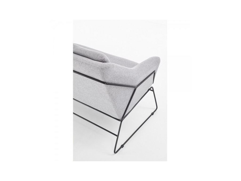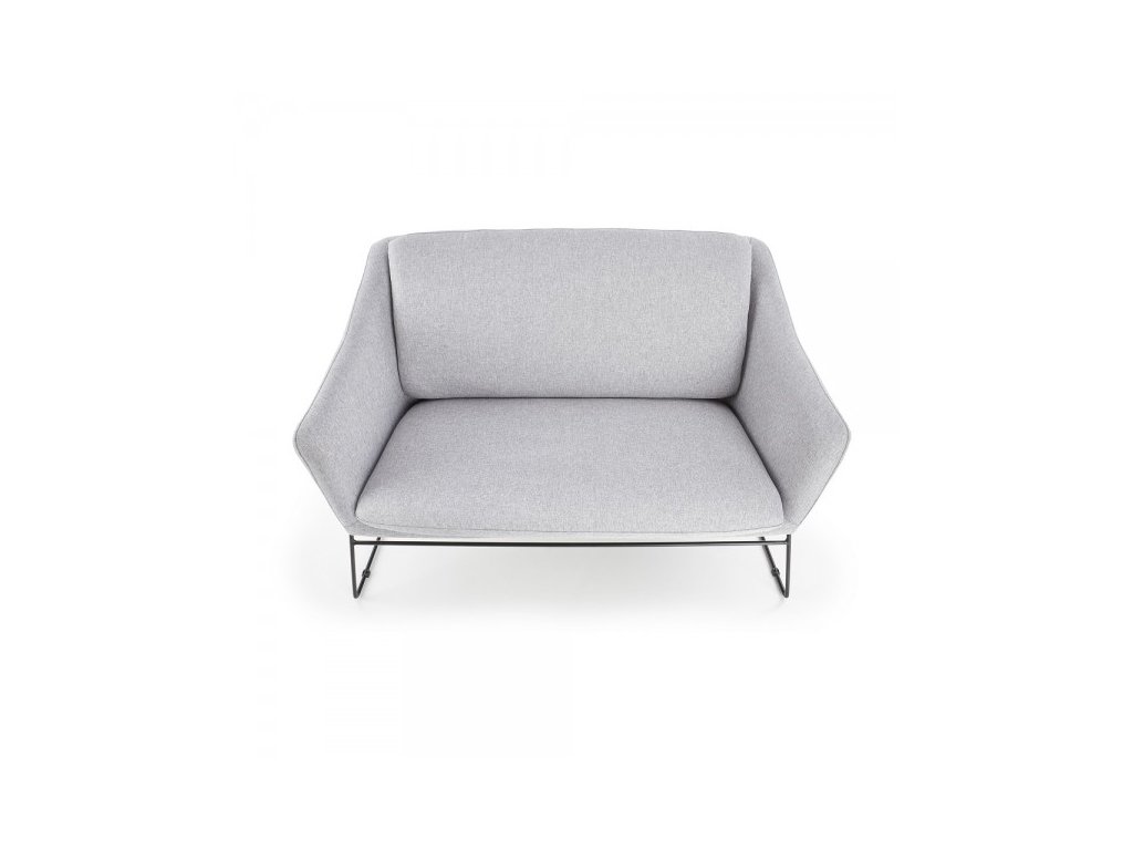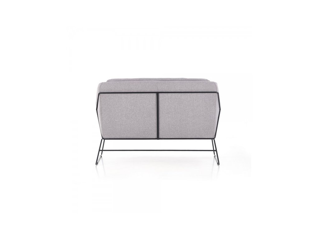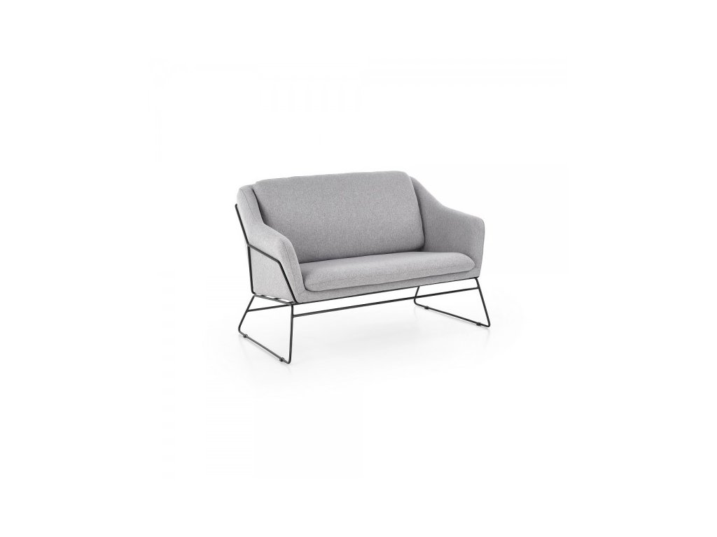 Rozměry křesla 125 × 77 × 83 cm (délka × hloubka × výška), dvojsedák do moderních obývacích pokojů, čalounění po celém povrchu světle šedou látkou, černé ocelové nožky, nosnost jednoho místa 110 kgDoplňkové parametry