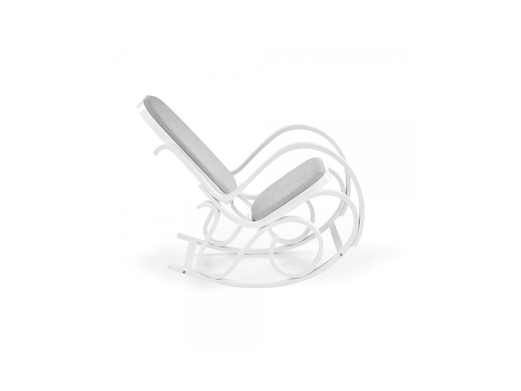 Relaxační houpací křeslo, dřevěná konstrukce, látkový potah, rozměry 52 × 90 × 95 cm (šířka × hloubka × výška)Doplňkové parametry