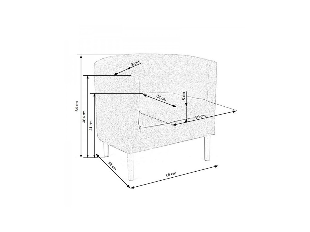 Křeslo do kanceláří i domácnosti, rozměry 64 × 66 × 58 cm (výška × šířka × hloubka), látkový potah, dřevěná podnož, nosnost 120 kgDoplňkové parametry