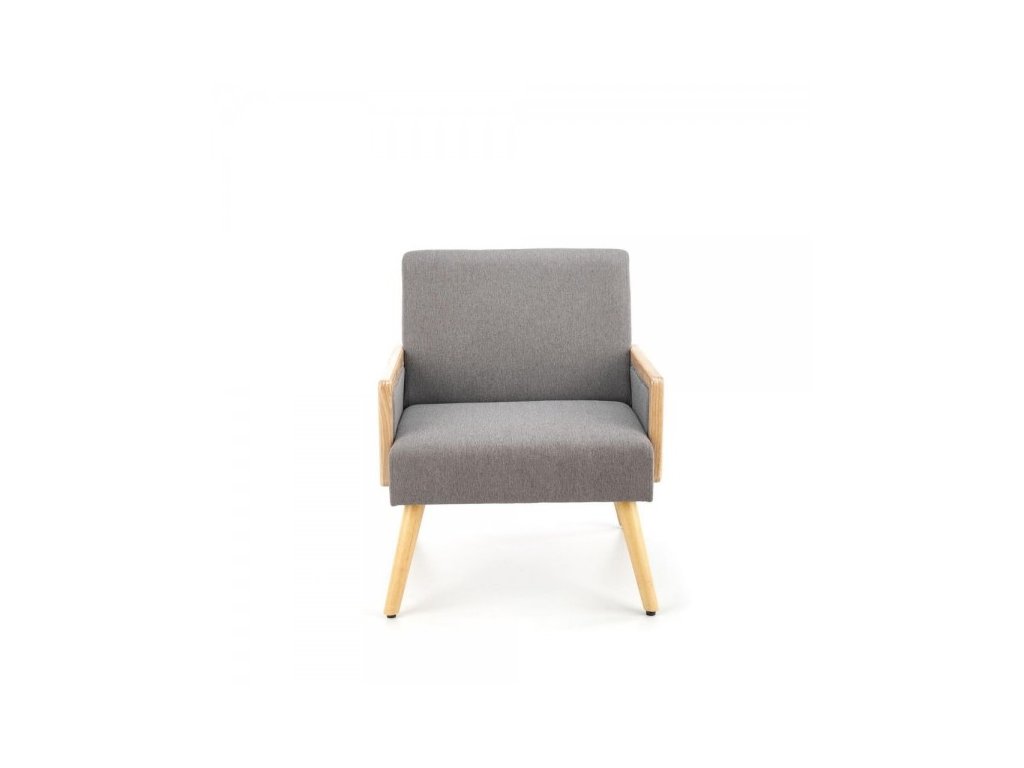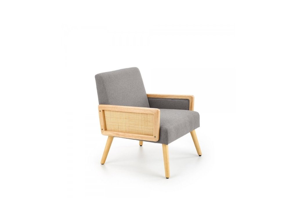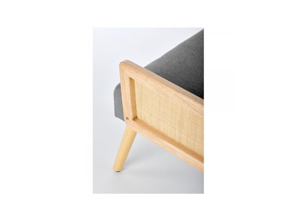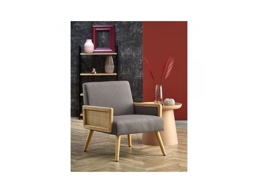 Stylové křeslo do obývacího pokoje i firemního lobby, rozměry: 63 × 68 × 73 × 41 cm (hloubka × délka × výška × výška sedu od země), materiál: látka / dřevo / umělý ratanDoplňkové parametry