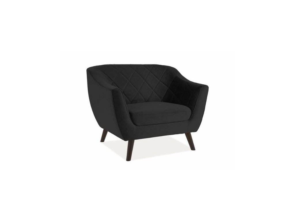 Moderní křeslo potažené sametovou látkou, podnož ze dřeva, rozměry 105 × 85 × 83 × 43 cm (délka × hloubka × výška × výška sedu od země)Doplňkové parametry