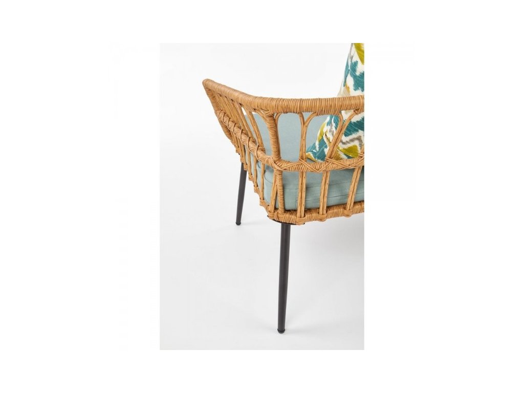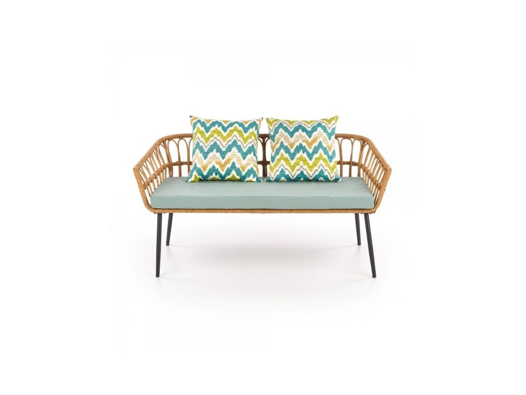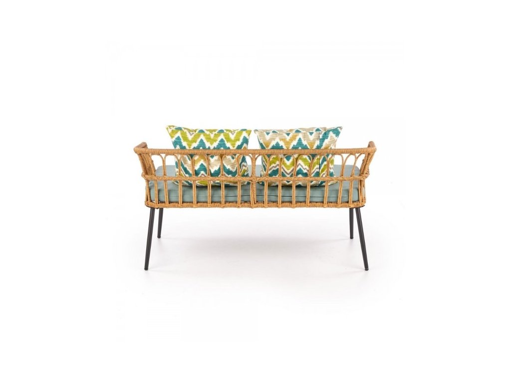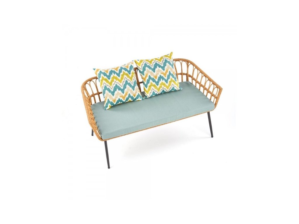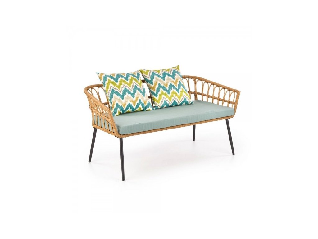Pohovka - dvojsedák, podnož tvoří 4 ocelové nohy, konstrukce ze syntetického ratanu, podsedák z látky, 2 látkové polštáře, nosnost 200 kgDoplňkové parametry