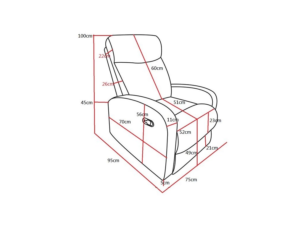 Polohovatelné křeslo, rozměry 75 x 95/158 x 79/100 x 49 cm (šířka x nastavitelná hloubka x nastavitelná výška křesla x výška sedu), látkový potah, ovládání na područce, opěrka nohouDoplňkové parametry