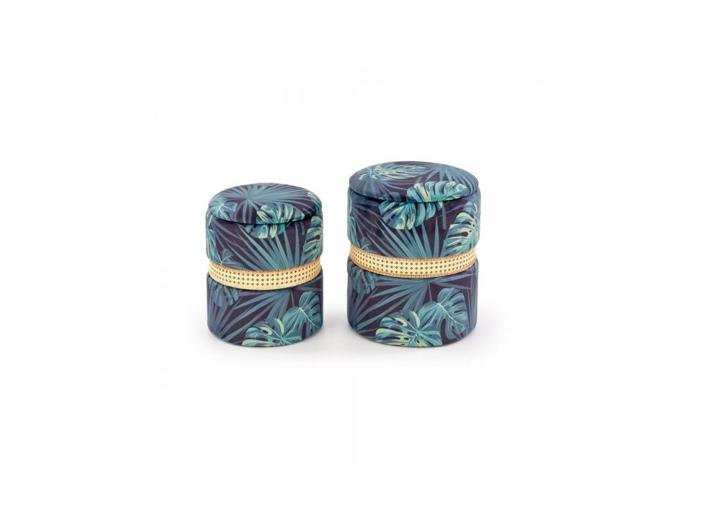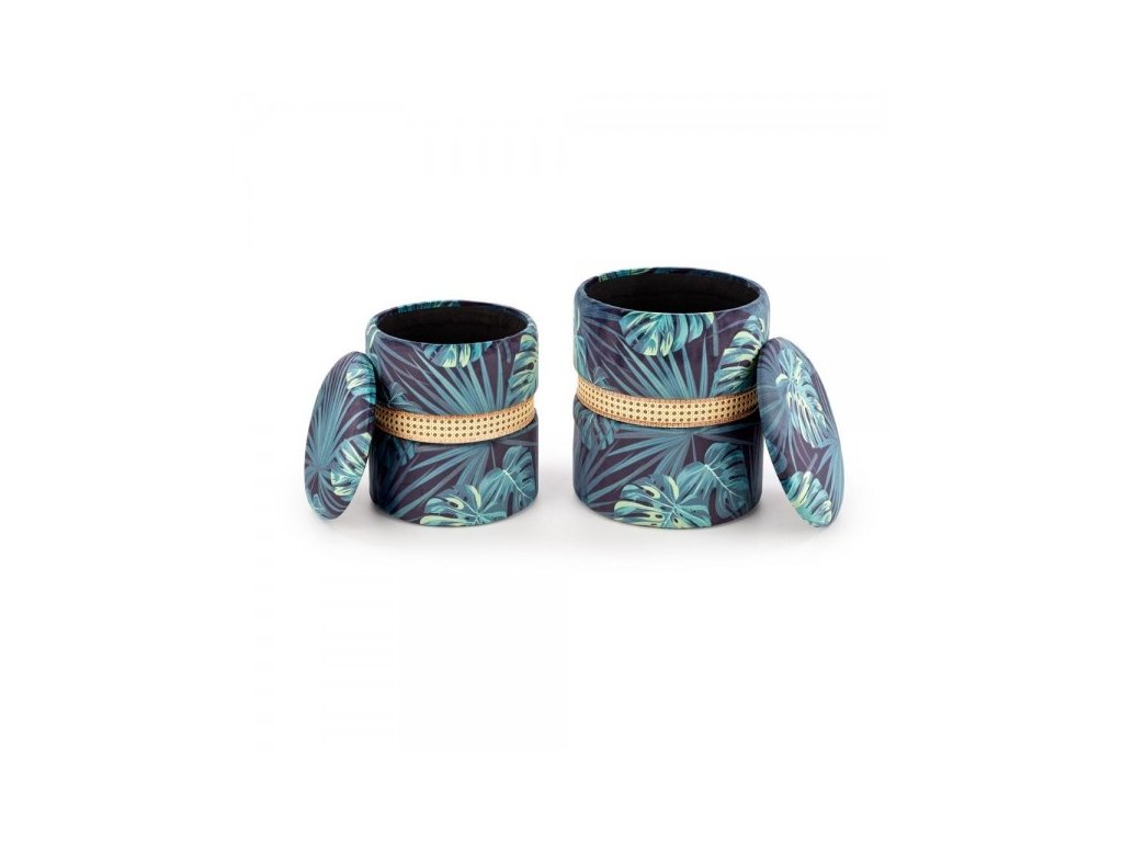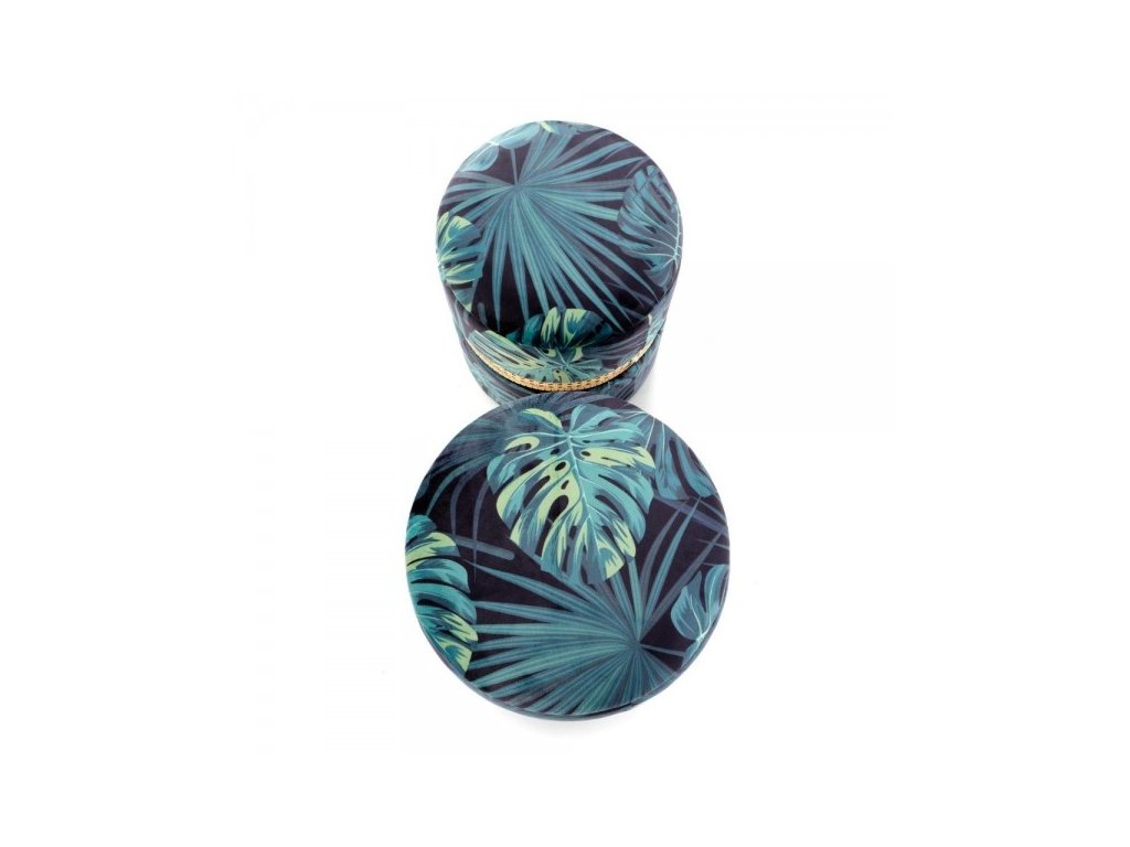 Set dvou designových taburetů, rozměry: 44 × 36 cm (výška × průměr) a 36 × 32 cm (výška × průměr), materiál: látka / plastDoplňkové parametry