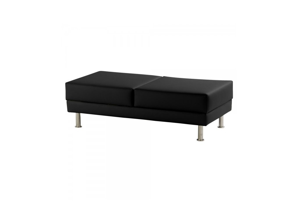 Rozměry 127 × 62 × 39 cm (délka × hloubka × výška), moderní taburet do komerčních prostorů, kovová konstrukce, potah z černé eko kůže, nosnost 120 kg/místo, hmotnost 20 kgDoplňkové parametry