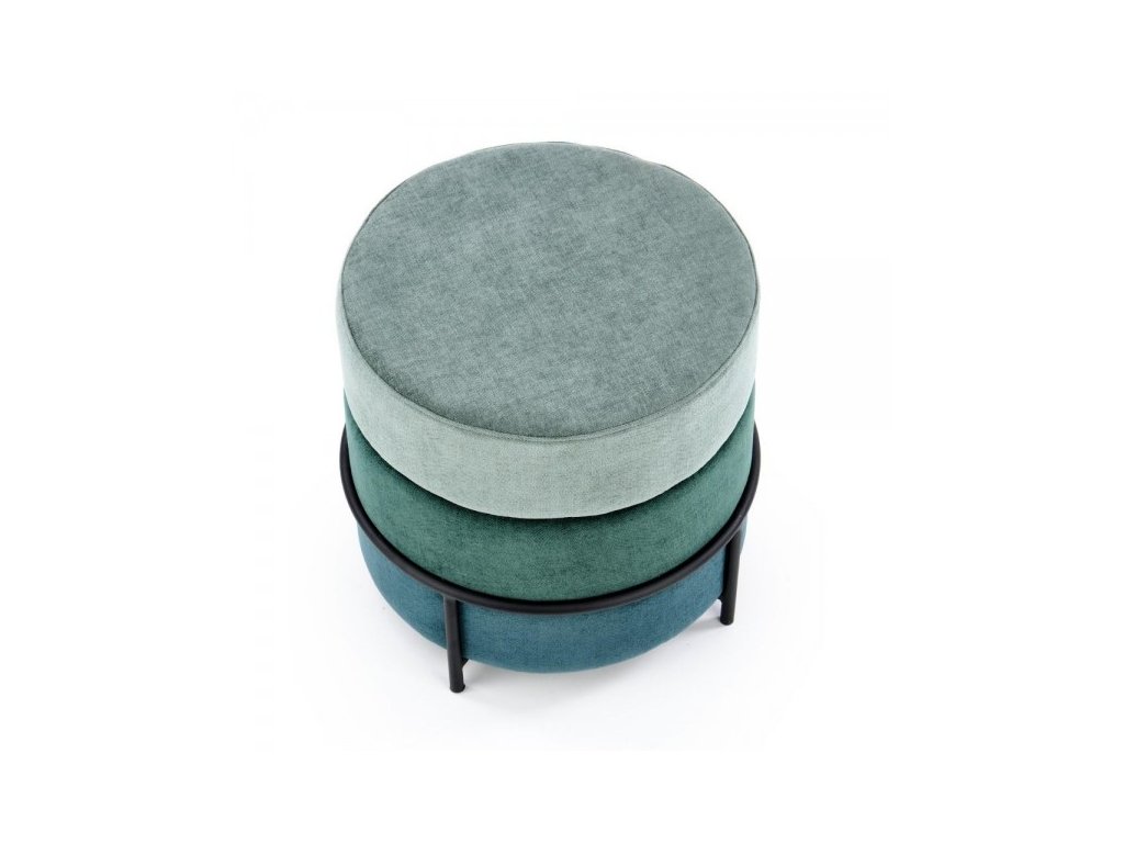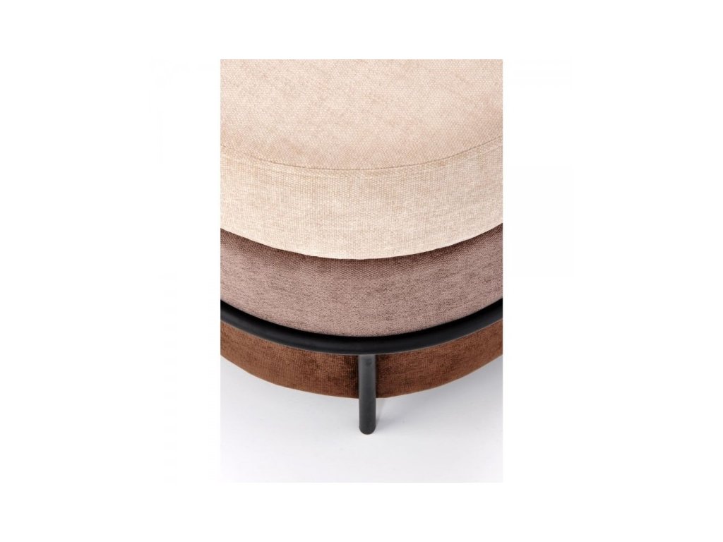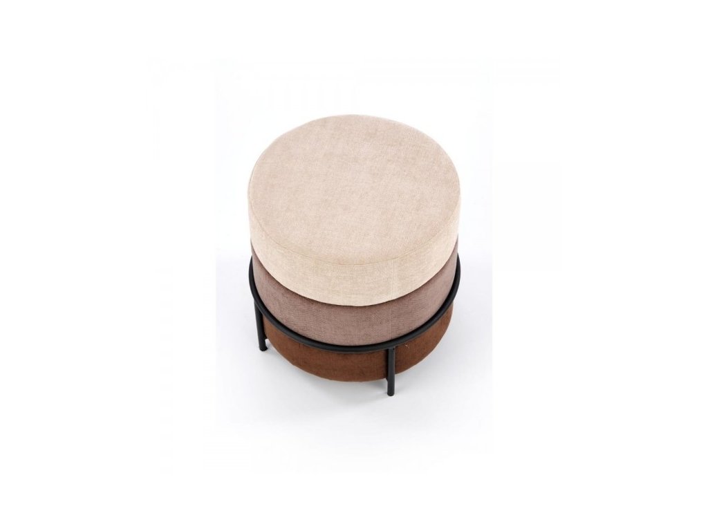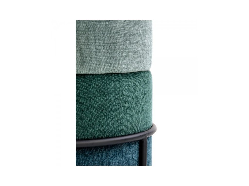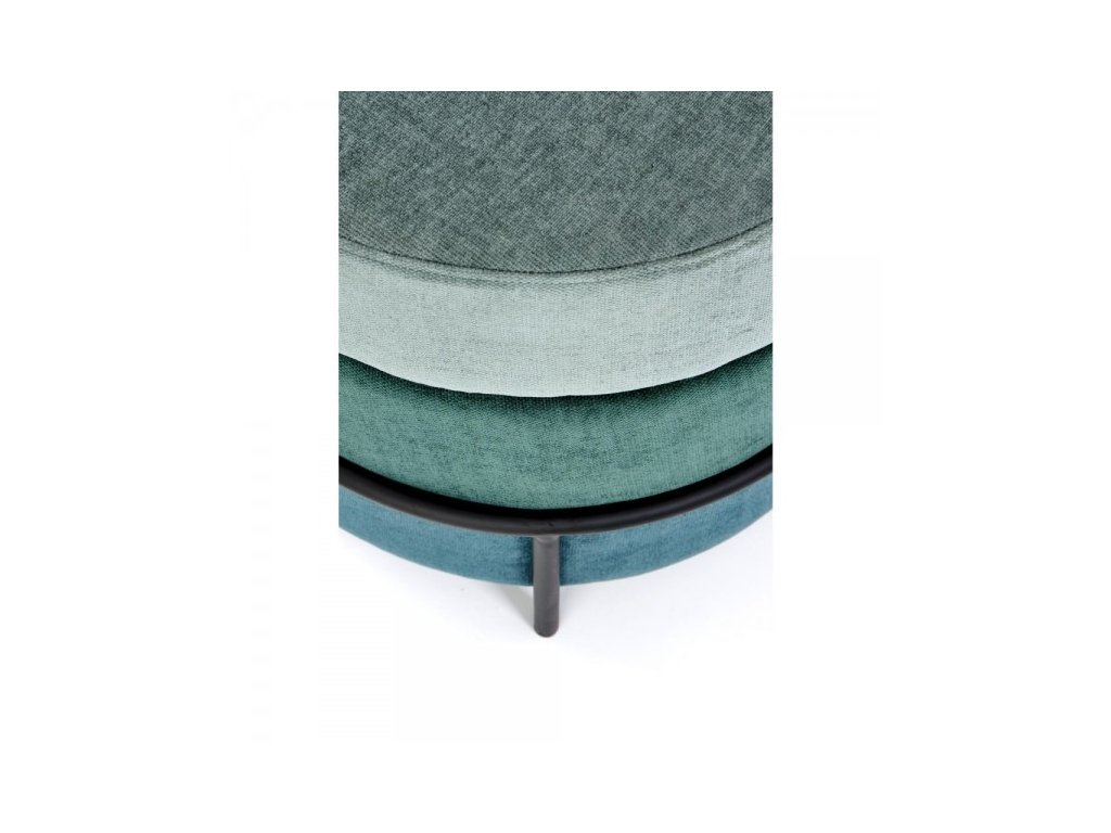 Taburet, rozměry 45 × 47 cm (průměr × výška), potah z tkaniny, konstrukce z práškované oceli, maximální nosnost 120 kgDoplňkové parametry