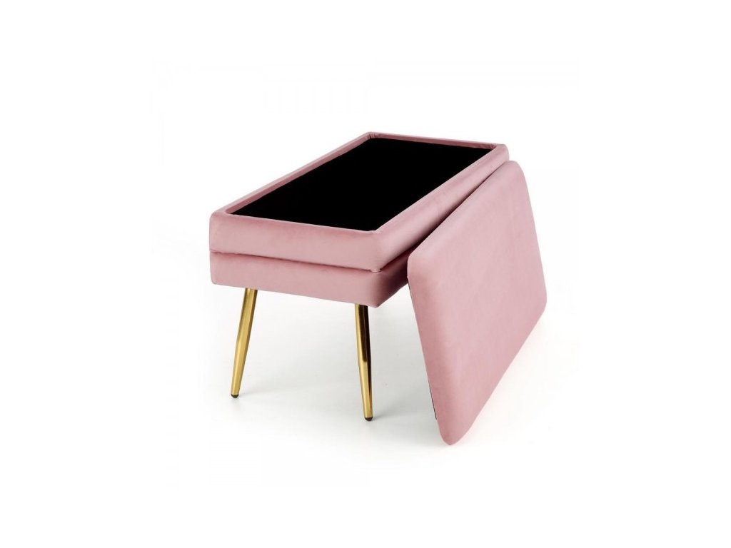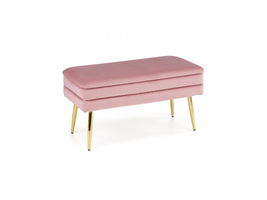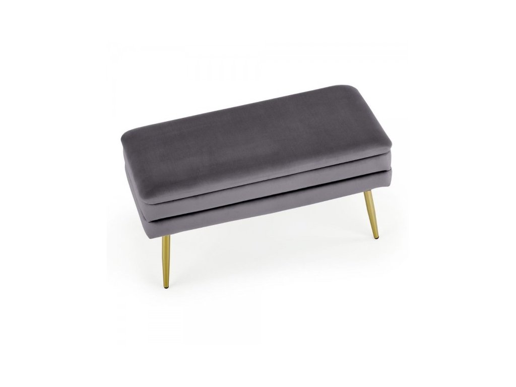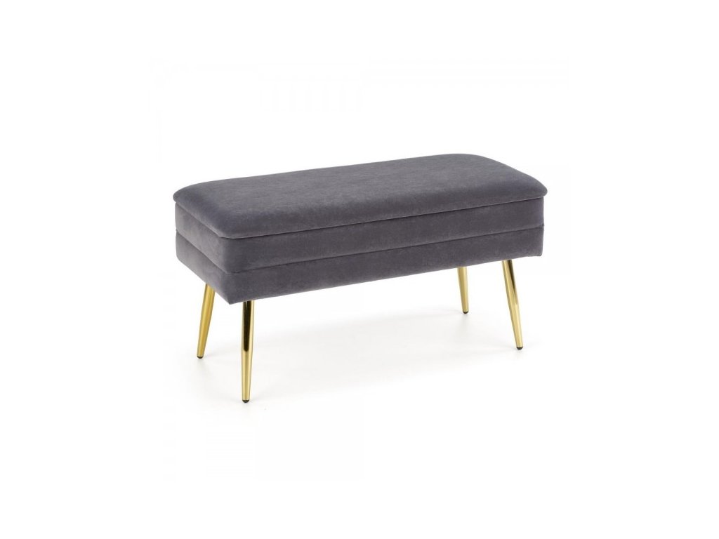 Taburet s úložným prostorem, rozměry 78 × 42 × 37 cm (délka × hloubka × výška), potah z tkaniny, nohy z chromované oceli, vhodný do moderních obývacích pokojů, pracoven či vstupních prostor domu, nosnost 100 kgDoplňkové parametry