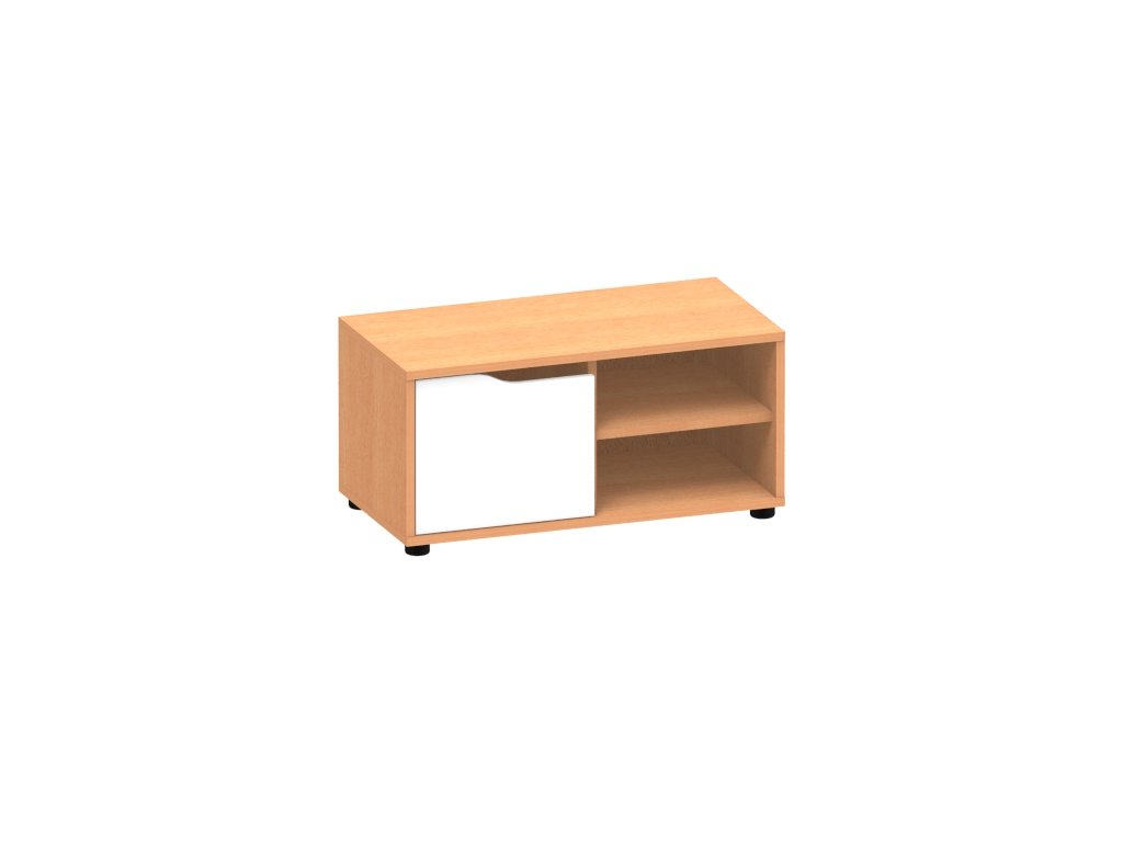 Nízká skříň kombinovaná jednodvéřová policová, 80x39x40 cm, z laminované dřevotřísky o síle 18 mm, ABS hrana, dezén a barva dle vašeho výběru.