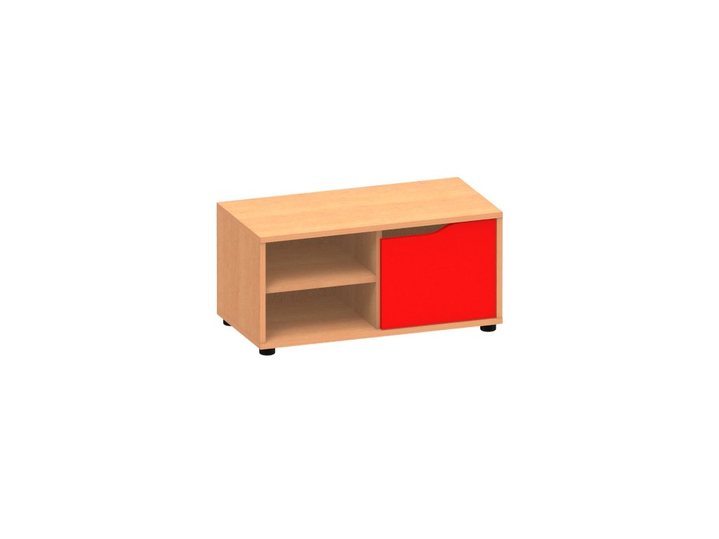 Nízká skříň kombinovaná jednodvéřová policová, 80x39x40 cm, z laminované dřevotřísky o síle 18 mm, ABS hrana, dezén a barva dle vašeho výběru.