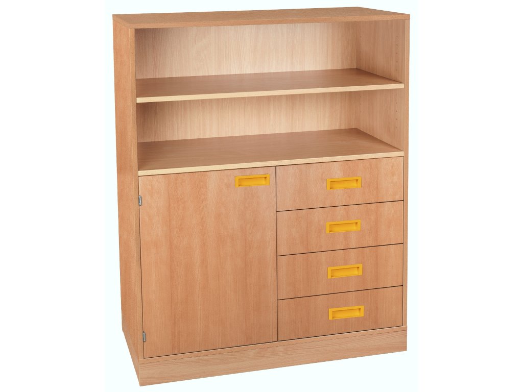 Skříňka kombinovaná s dveřmi a zásuvkami, se soklem
