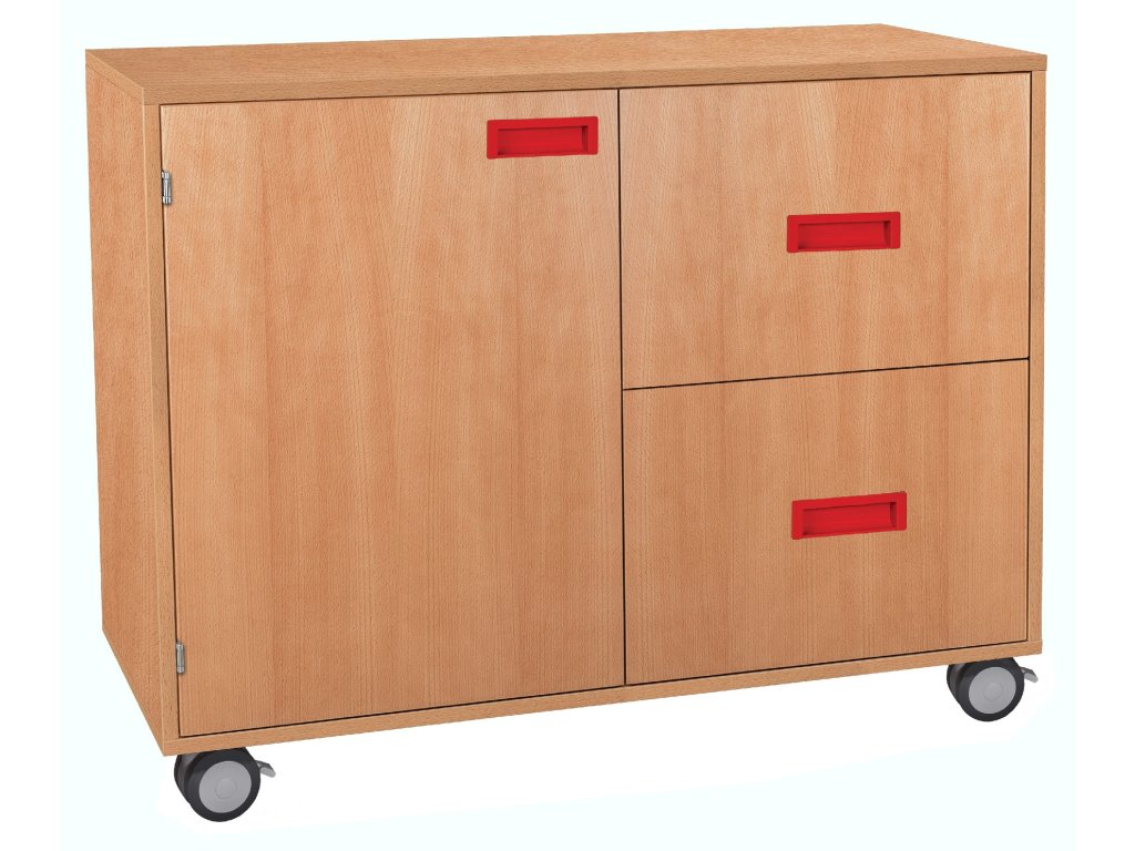 Skříňka kombinovaná se zásuvkami a dveřmi, s kolečky
