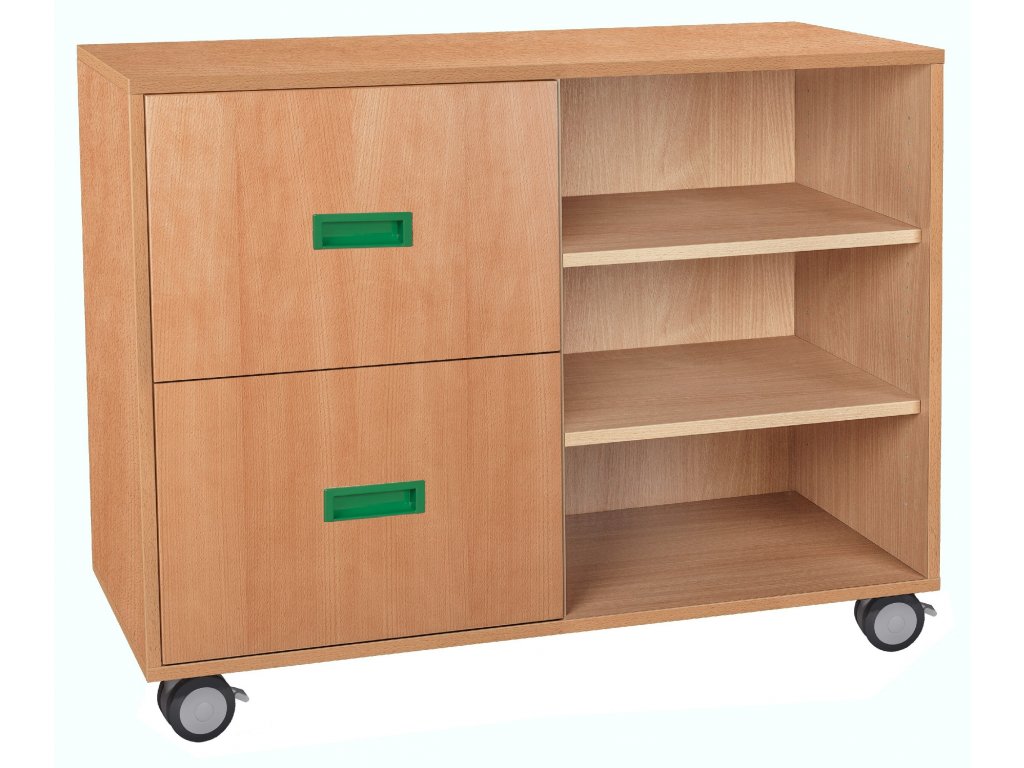 Skříňka kombinovaná se zásuvkami a policemi, s kolečky