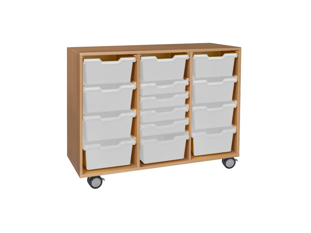 Střední skříň zásuvková, 104x79x40 cm, z laminované dřevotřísky o síle 18 mm, ABS hrana, s kolečky.