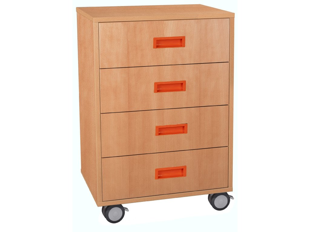 Nízká skříň zásuvková, 54x79x40 cm, z laminované dřevotřísky o síle 18 mm, ABS hrana, s kolečky.