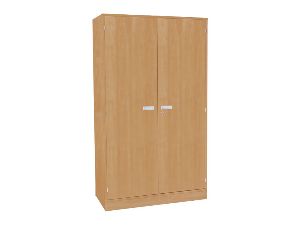 Vysoká skříň policová dvoudvéřová se zámkem, 104x180x60 cm, z laminované dřevotřísky o síle 18 mm, ABS hrana, provedení se soklem.