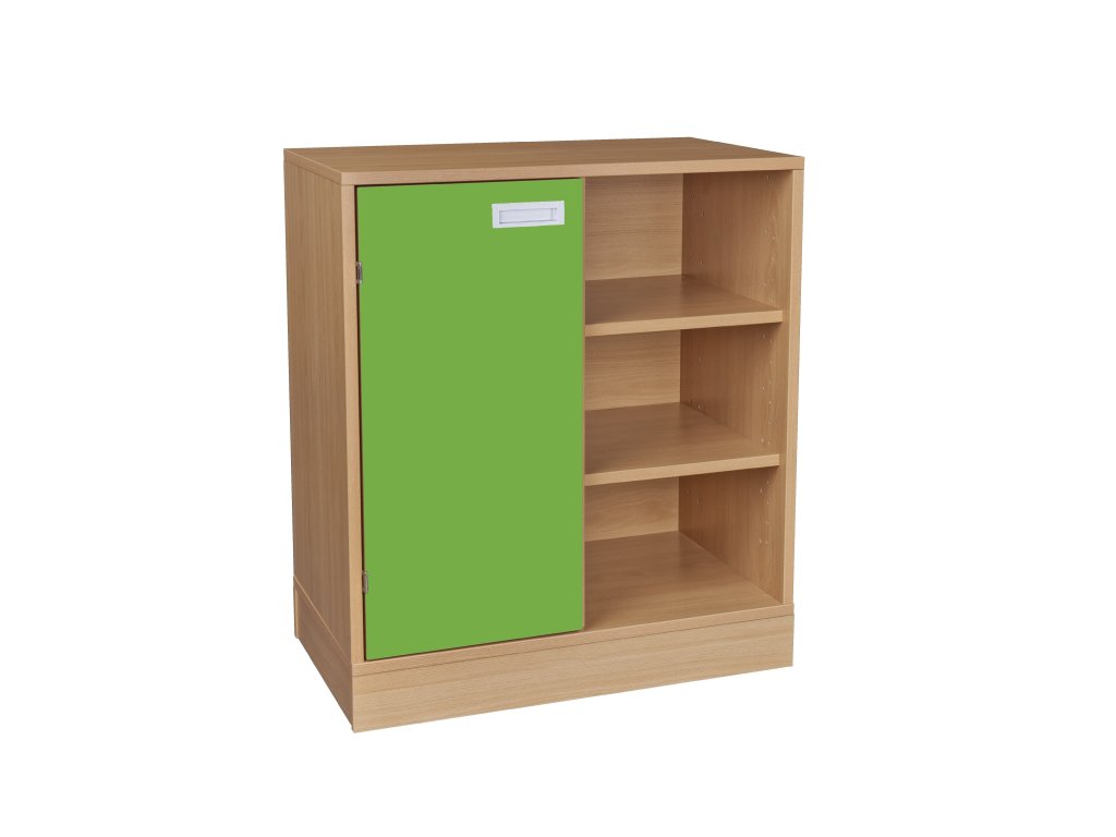 Nízká skříň kombinovaná jednodvéřová policová, 70x79x40 cm, z laminované dřevotřísky o síle 18 mm, ABS hrana, provedení se soklem.