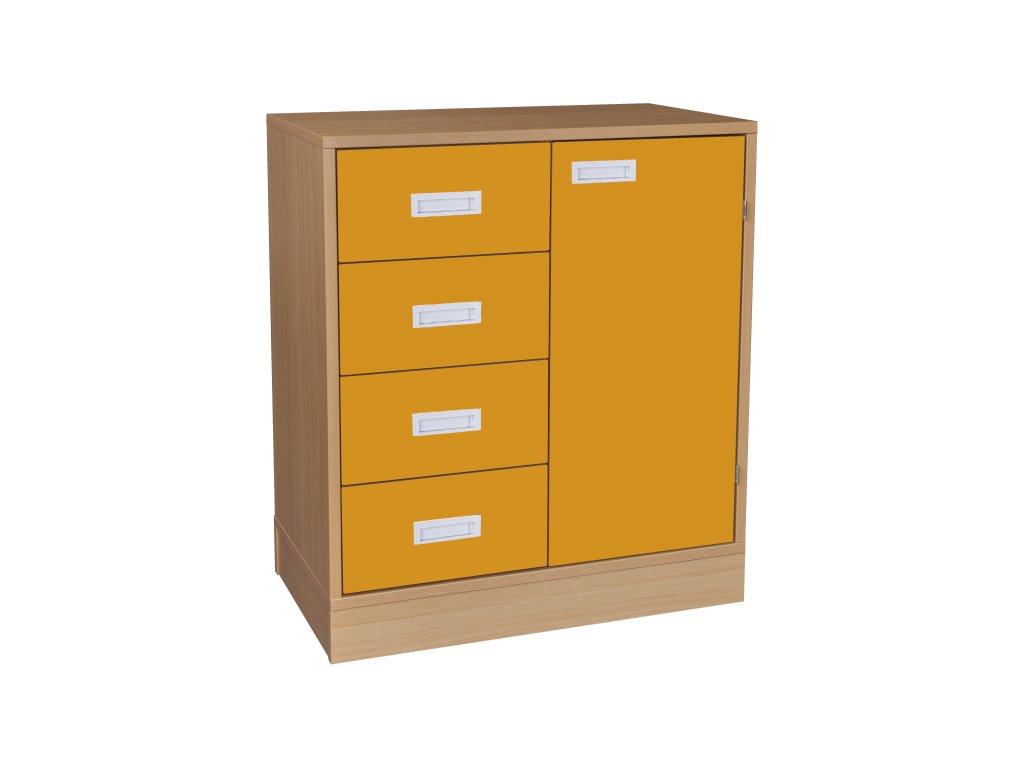 Nízká skříň kombinovaná jednodvéřová se zásuvkami, 70x79x40 cm, z laminované dřevotřísky o síle 18 mm, ABS hrana, provedení se soklem.