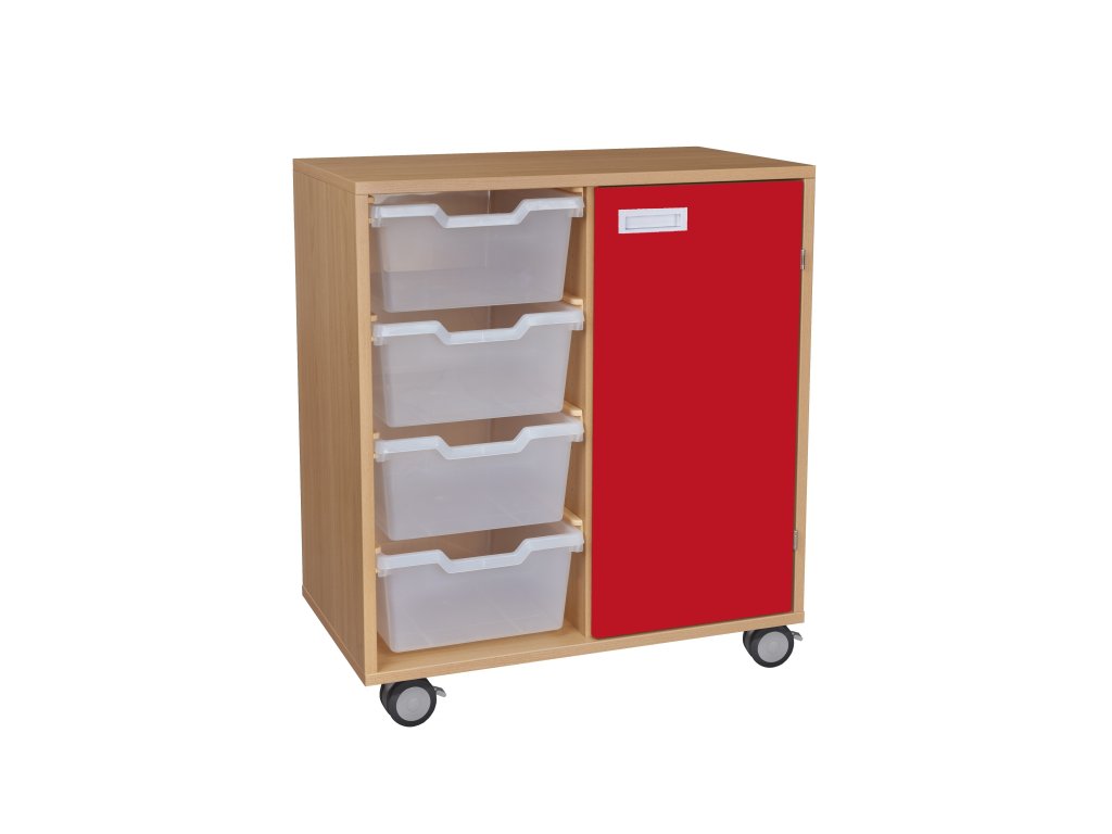 Nízká skříň kombinovaná jednodvéřová se zásuvkami, 70x79x40 cm, z laminované dřevotřísky o síle 18 mm, ABS hrana, s kolečky.