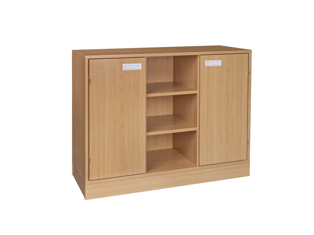 Střední skříň kombinovaná dvoudvéřová policová, 104x79x40 cm, z laminované dřevotřísky o síle 18 mm, ABS hrana, provedení se soklem.