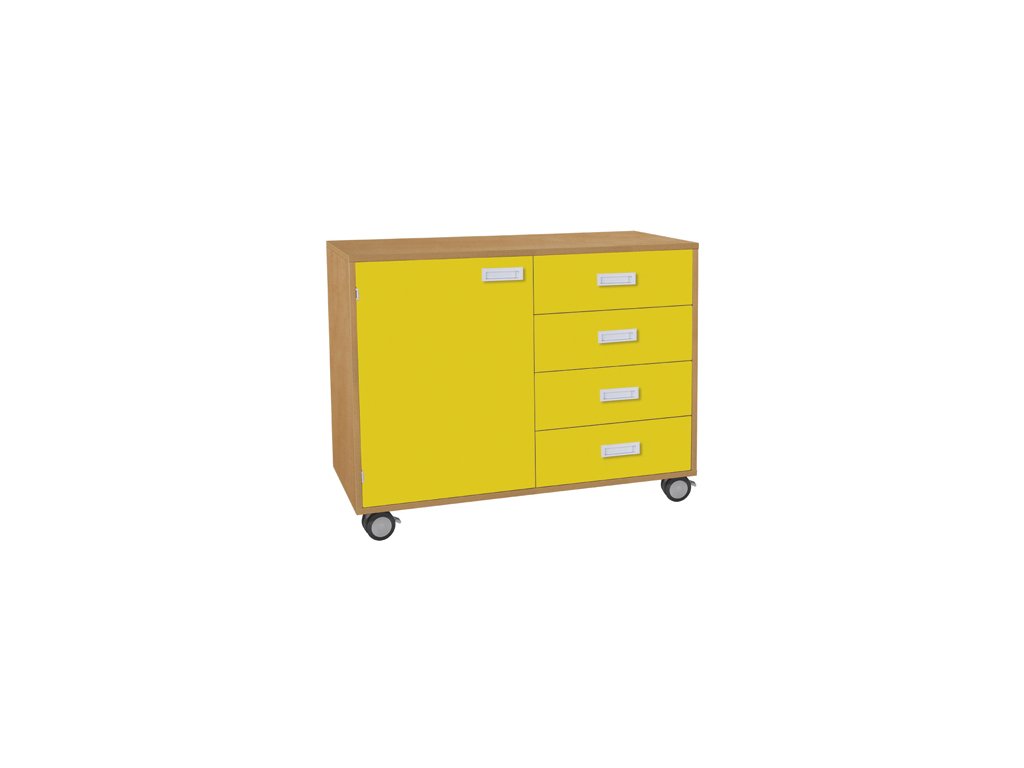 Střední skříň kombinovaná jednodvéřová se zásuvkami, 104x79x40 cm, z laminované dřevotřísky o síle 18 mm, ABS hrana, s kolečky.