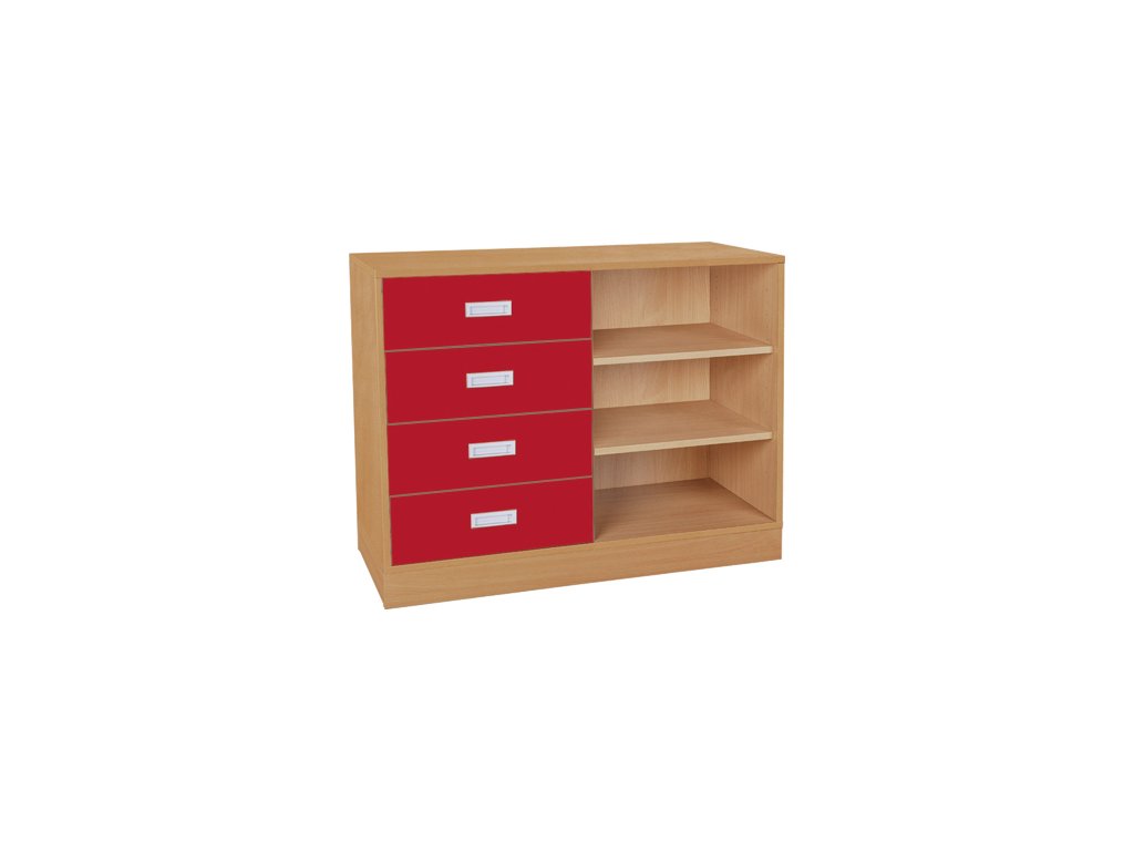 Střední skříň kombinovaná policová se zásuvkami, 104x79x40 cm, z laminované dřevotřísky o síle 18 mm, ABS hrana, provedení se soklem.
